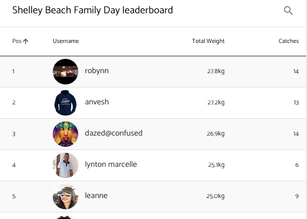 Competitors use the CODEDFISH mobile app to upload catches during a competition. The top 5 fish according to respective lengths are automatically calculated into a final total length on completion of the competition.